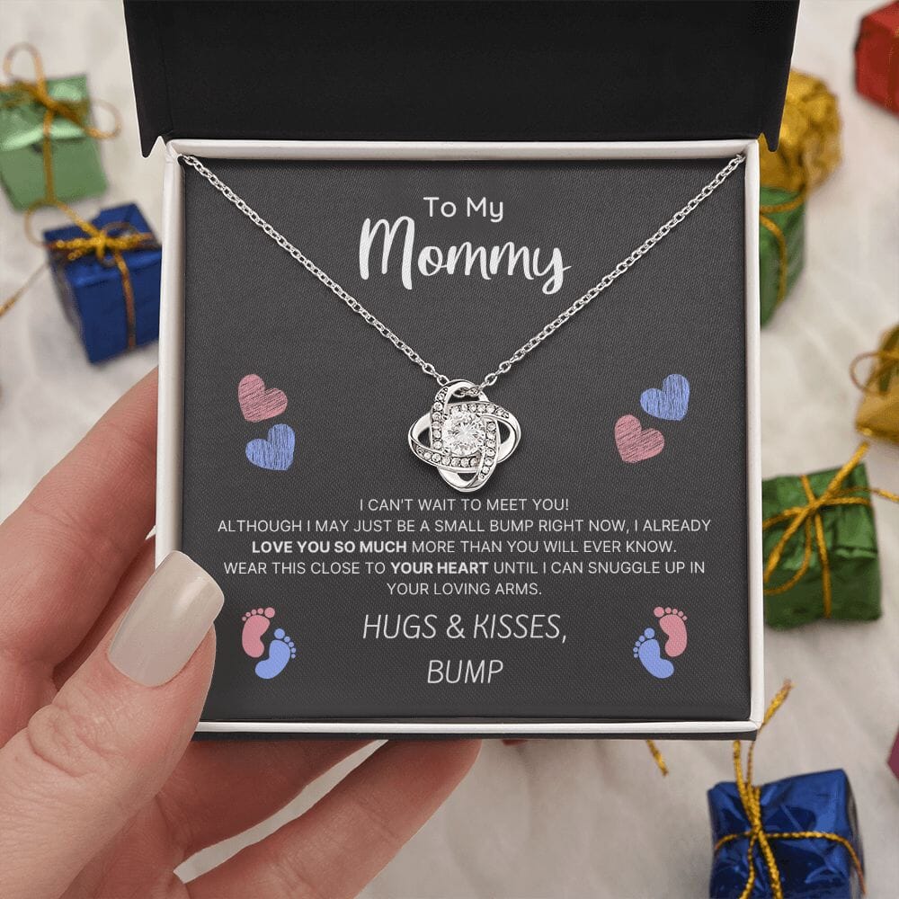 Imagine the Expecting Mother's reaction receiving this beautiful Love Knot Necklace & Personalized Message Card!